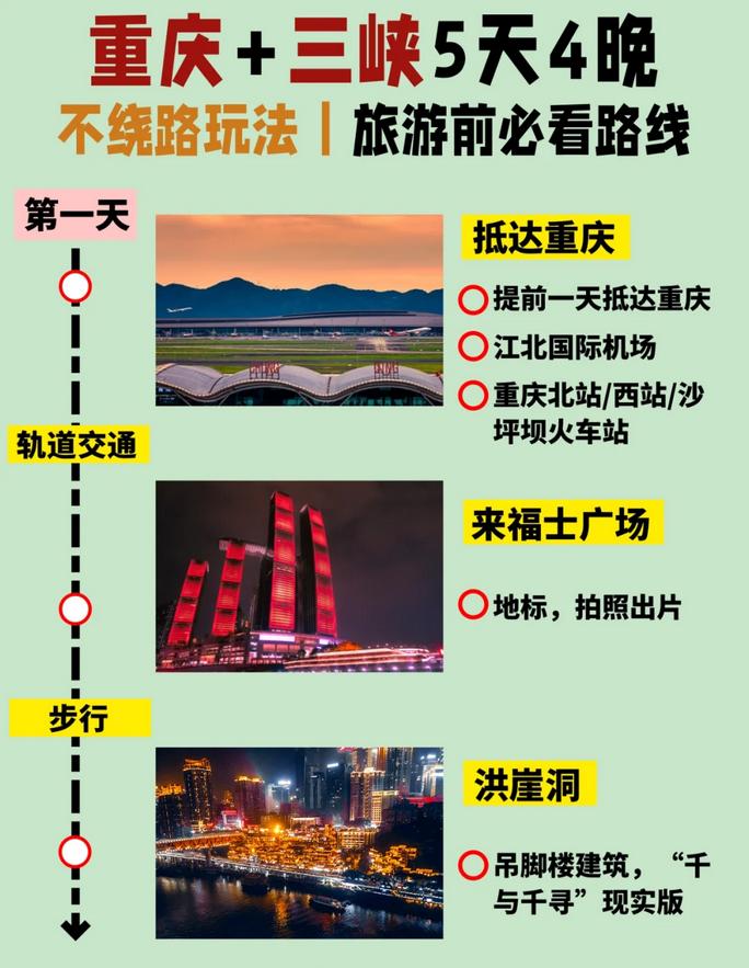 🚄 高铁:重庆北站、重庆西站及沙坪坝站,均有轨道交通直达码头。