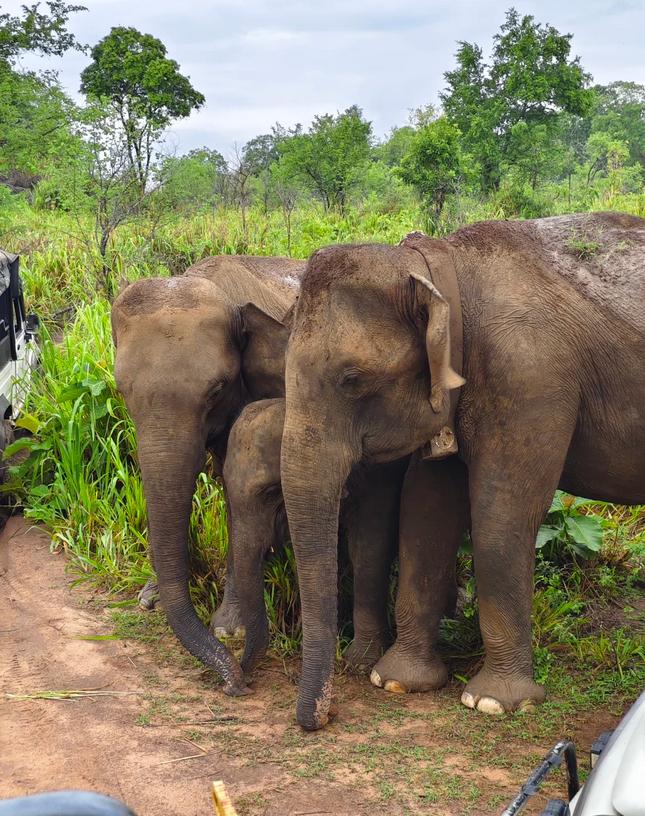 此外,还看到了位于米内日亚国家公园附近的P15大象,一家三口,小象竟然在站着时睡着了!