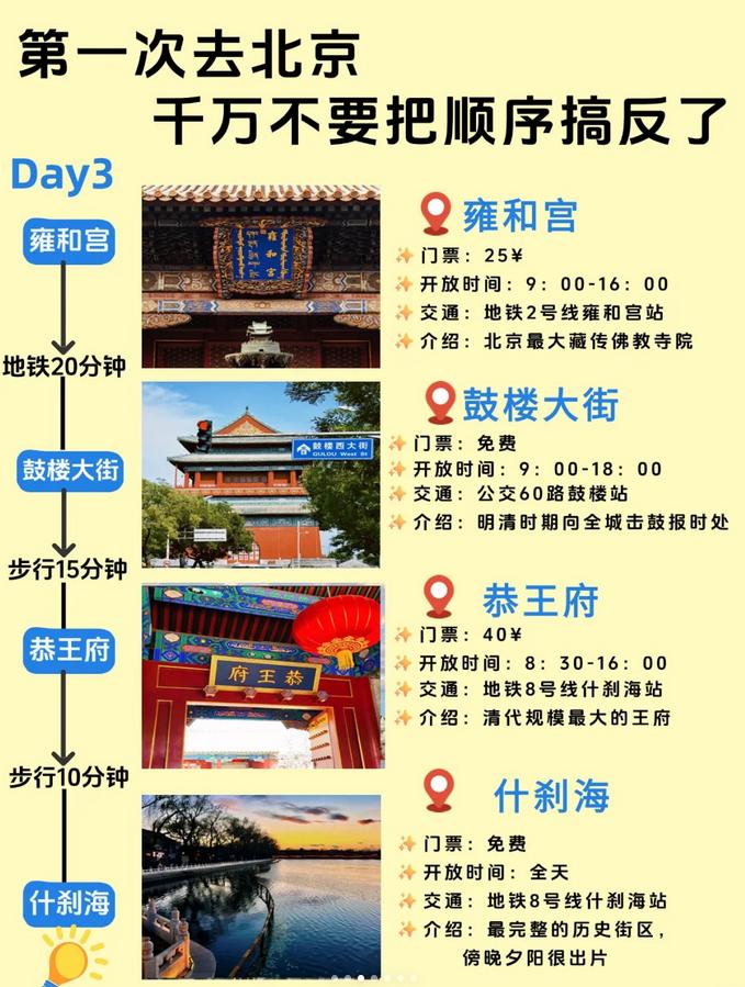 亲爱的朋友们,如果你们打算在5到8月份前往北京游玩,这篇旅游攻略将为你们提供全面的安排‼️这里有北京的热门景点、美食推荐和住宿信息,都为大家整理好了,赶快出发吧❗️❗️❗️
