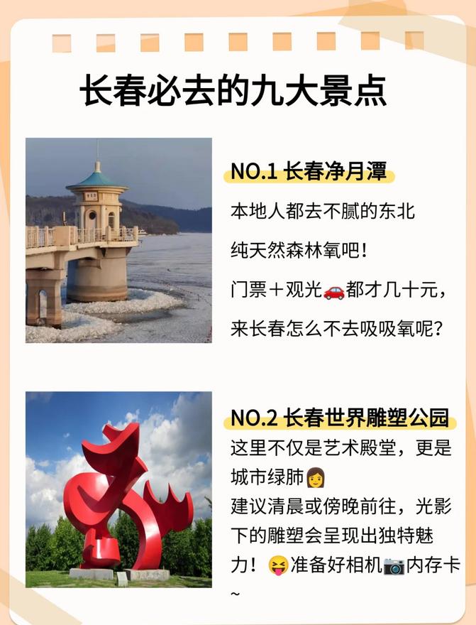 交通:长春市内可通过地铁和公交出行,前往吉林或延吉可选择高铁。 长春的夏季清新宜人,拥有丰富的历史文化和自然风光,非常适合学生群体进行低预算的深入游览! 🌿🚞