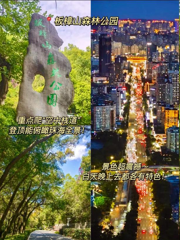 2️⃣板樟山森林公园:这里的“空中栈道”是个重点,登顶后可以俯瞰珠海的全景,慢慢走大约需要1小时,难度不大,轻松应对~