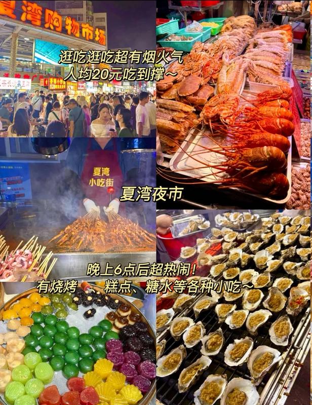 4️⃣夏湾夜市:晚上6点后热闹非凡!这里有烤鱿鱼、鸡蛋仔、糖水等各种美食,边逛边吃,充满了烟火气息,人均20元就能吃得很满足~
