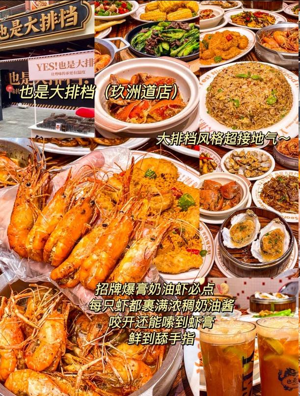 1️⃣也是大排档(玖洲道店):大排档风格非常接地气,每只虾都裹满浓厚的奶油酱,咬开时还能吸到虾膏,鲜美得让人忍不住舔手指,人均90元就能吃得很痛快~