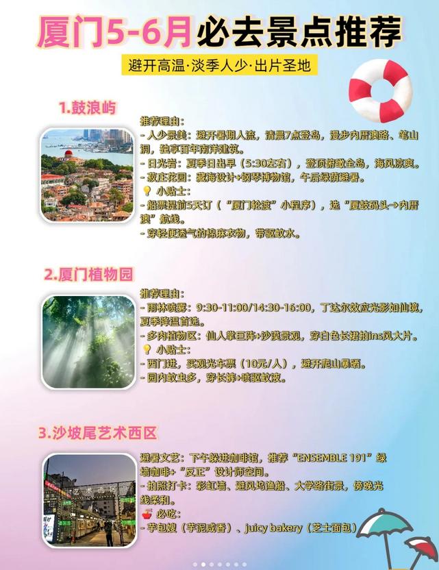 3️⃣ 防止蚊虫叮咬:植物园和鼓浪屿的植被丰富,记得准备驱蚊液和止痒膏。