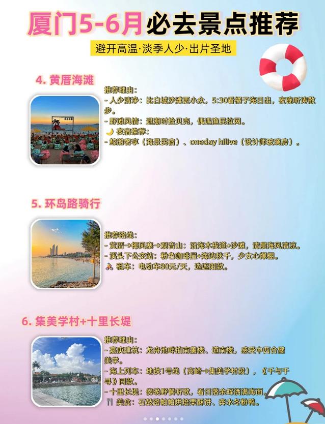 4️⃣ 错峰出行:建议提前预约鼓浪屿的船票和钟鼓索道,避免现场排队的麻烦。