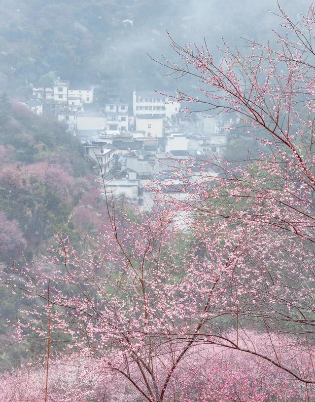 整个村庄坐落在一个山谷之中,山上种满了梅花