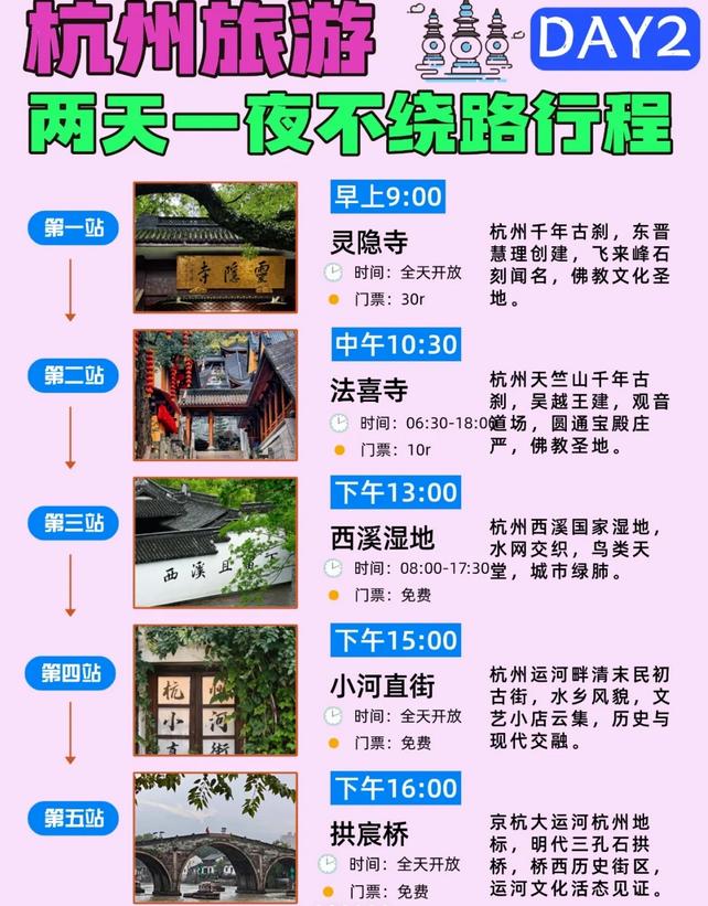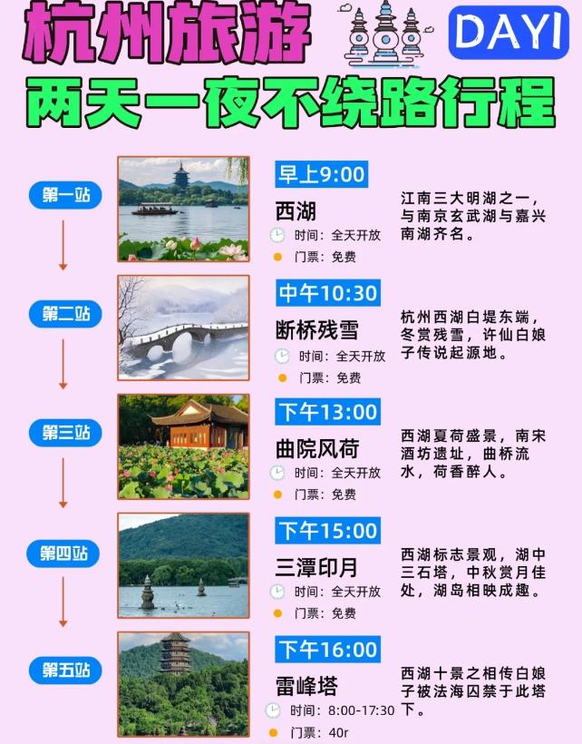 人间天堂,苏杭之美。杭州的魅力,值得你在周末的两天里尽情体验!这份不走弯路的行程攻略,将帮助你轻松游览西湖十景、千年寺庙与文艺街区,同时涵盖吃、住、行,快来收藏吧!🍃