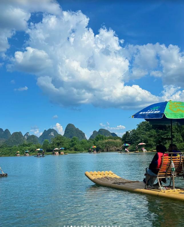Day2️⃣:从桂林乘坐漓江游船前往阳朔,行程约4小时,途中风景让人深刻体会到“桂林山水甲天下”的真谛。记得准备20元人民币,在黄布倒影景点拍照📷。