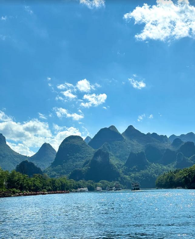 ⚠️购票渠道:通过公众号“漓江售票处”购买,我们选择了四星级游船🚢,座位分配随机,环境相对舒适,午餐为自助简餐。我们选择的是9点半的航班,时间非常合适,可以携带行李箱上船。