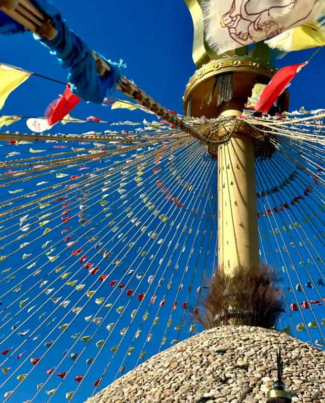 🌟我非常喜欢敖包! “鲜艳的神幡如同手臂一般召唤着远方的牧人,这就是敖包。最初是在广袤的草原上,用石头堆成的道路和界限的标志,后来逐渐演变为祭祀山神、路神以及祈求丰收和家庭平安的象征。