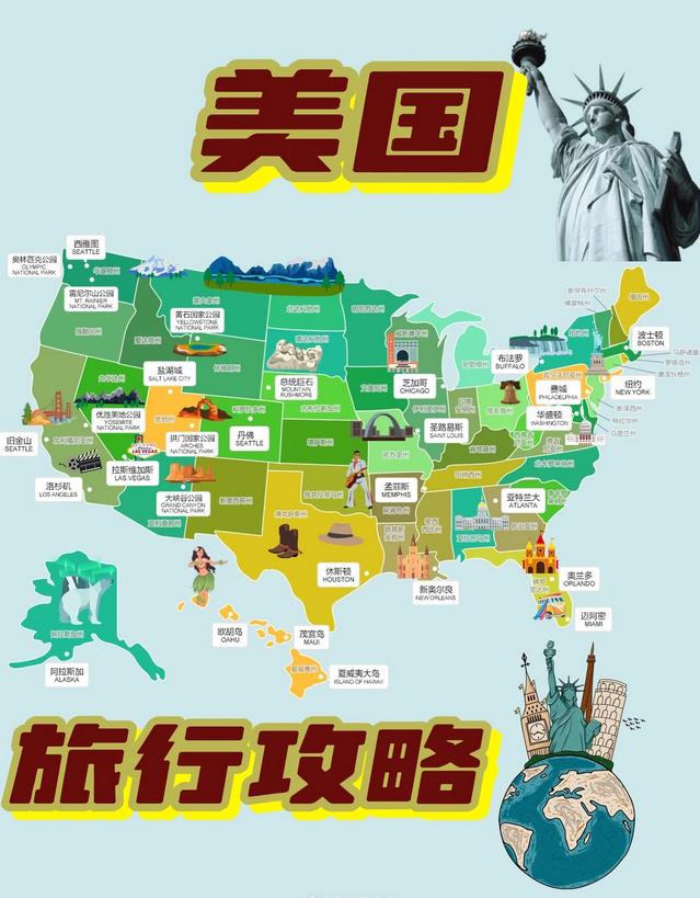 - 纽约:自由女神像、时代广场、帝国大厦和大都会艺术博物馆等都是游客不可错过的景点。