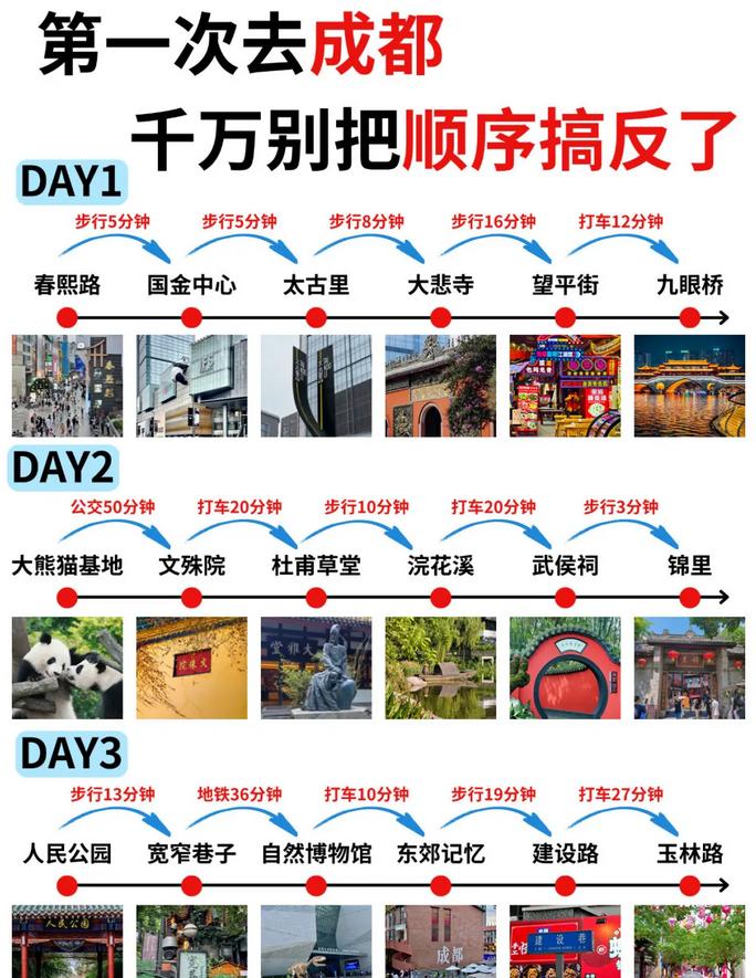 🚥地铁:成都出行的首选,几乎所有景点都有直达线路,票价在2-10元之间