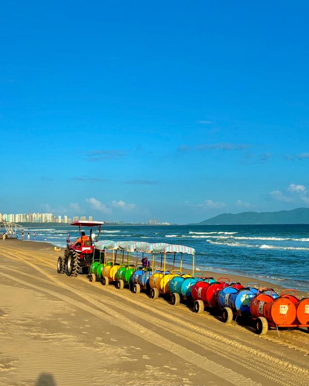 靠近椰梦长廊的公寓堪称理想的海景房,视野开阔。中午时分,我们打卡天涯海角(虽然知道那只是两块大石头,但还是需要拍照留念)。晚上则前往三亚亿恒·夜市,琳琅满目的小吃价格透明,完全没有被坑的感觉。