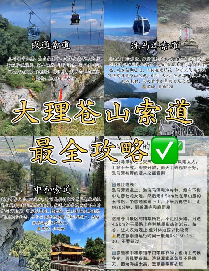 苍山的美景吸引着游客,这里有三条索道可供选择。