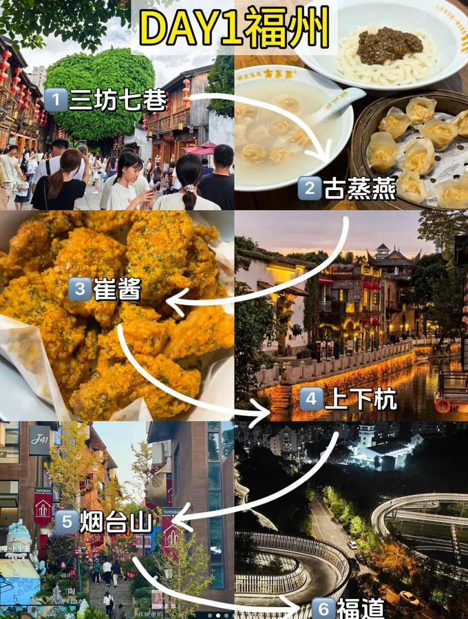 ✅ 三坊七巷(免费) 在南后街打卡爱心树,参观林则徐纪念馆和冰心故居! 11:30-13:00 古蒸燕、崔酱(非常美味😋) 13:30-15:30