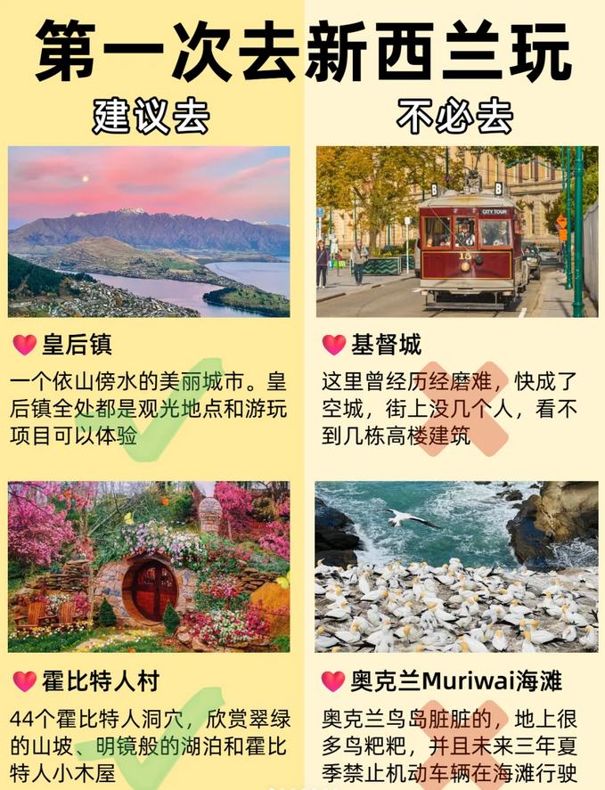 姐妹们👀,我刚从新西兰回来,发现那里的美景简直让人窒息,心情激动得无法平静!所以我决定整理一份🔴“红黑榜”,以便大家参考!
