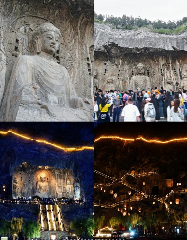 📍行程:早上我们前往河南博物院,作为中华文明的发源地,馆内的珍贵藏品令人惊叹。下午乘高铁前往洛阳,放下行李后直接前往龙门石窟,庐舍那大佛给人留下深刻的印象。从5点逛到7点,等到灯光亮起才离开。