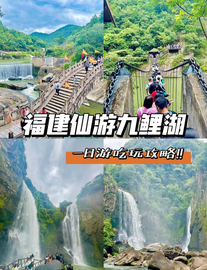 1️⃣ 九漈瀑布群 这是亚洲少见的阶梯式瀑布群,总落差超过400米!其中珠帘漈和玉柱漈最为壮观,尤其在雨后水量充沛时宛如人间仙境,航拍效果极佳!