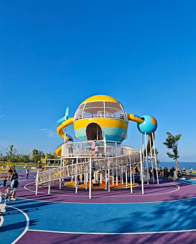 🎢月亮湾休闲公园的童趣乐园。继续沿着山大夜市向前走约300米,完全免费,没有动力设施,橡胶地面适合游戏,公厕和停车位都很便利。小朋友们玩得非常开心,不想离开。 🗿仙人桥(适合捡小螃蟹)