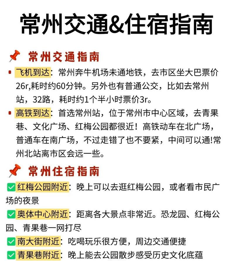 🚄高铁:可通过高铁或火车抵达常州站或常州北站,出站后可以选择公交、出租车或地铁前往酒店。