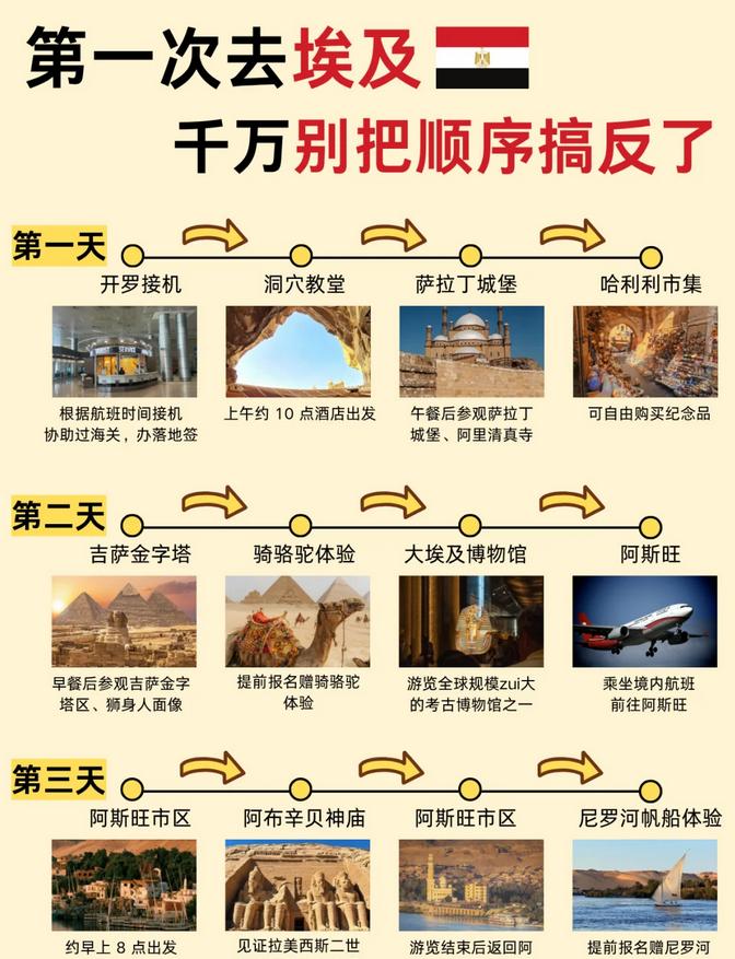 第一次去埃及✈️,按照这个路线能够游览大多数景点,避免踩雷❗让你尽情玩乐~