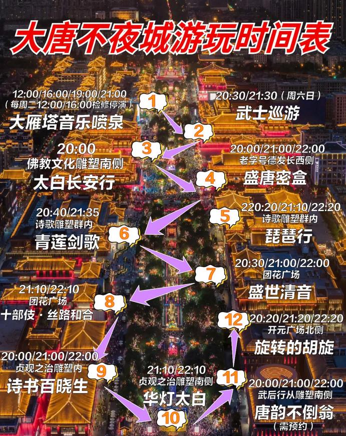 ⏰ 开放时间:全天开放(建议在17:00到23:00期间游玩,晚上的灯光秀和表演更为集中)